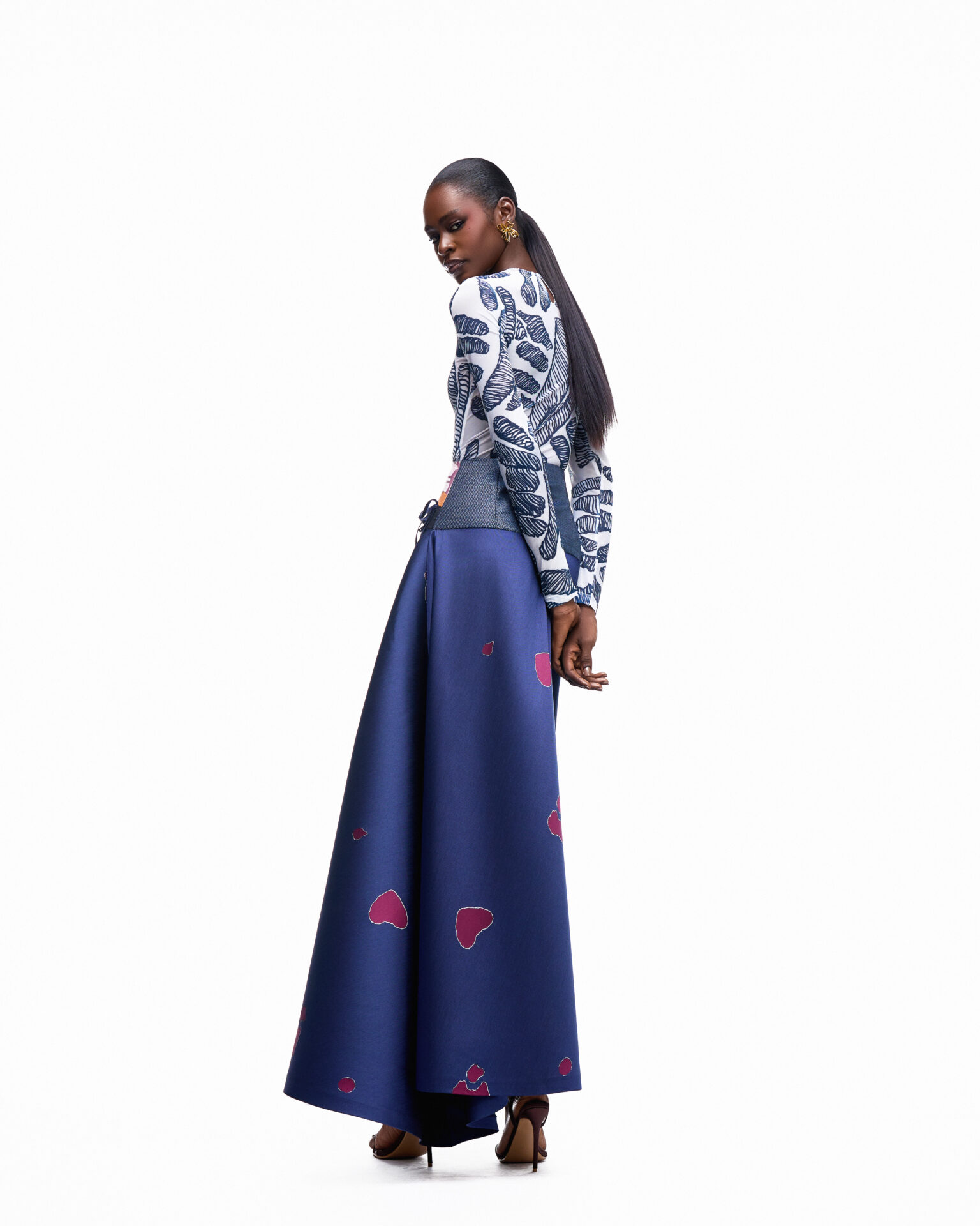 High waisted, hip fitted full length skirt.